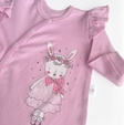 Модель оздоблена рюшами на плечах, що додають образу особливої ніжності. Має застібку на кнопках по всій довжині для швидкого та легкого переодягання малюка.