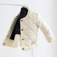 Зверху простьобана плащовка, всередині підкладочна тканина, застібається на кнопки, утеплена силіконізованим синтепоном, який зберігає тепло та захищає від вітру.