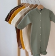 Однотонний комбенізон з тканини інтерлок на байці, має застібку на кнопках по всій довжині, для легкого переодягання малюка.